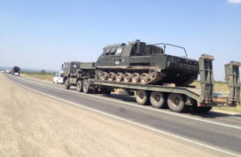 Активний рух військової техніки, яка без проблем заїжджає в Україну, спостерігається неподалік від місця, де стали табором КамАЗи "гуманітарного конвою"