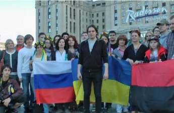 Близько 20 росіян, одягнених у вишиванки, прийшли до посольства України в Москві вшанувати пам'ять загиблих українських військових