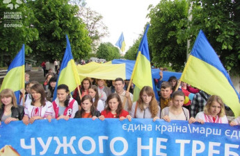 Сотні волинян зібрались у містечку Ківерці на вулиці Шевченка, аби долучитись до Всеукраїнської ініціативи об’єднати схід та захід нашої держави