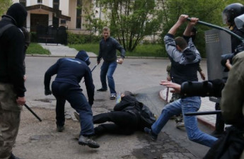 ]У Донецьку після атаки проросійських сил на демонстрацію за єдність України в руках нападників залишаються від чотирьох до семи заручників