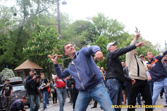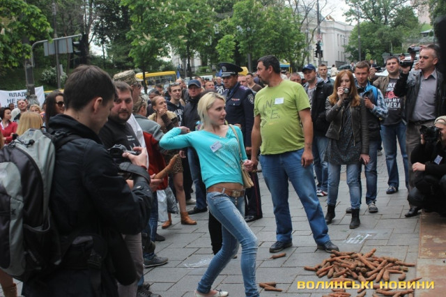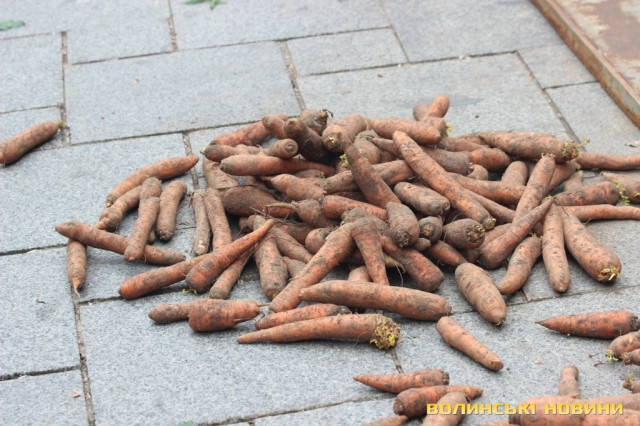 Між правоохоронцями та мітингувальниками протистояння не виникає, а моркву жбурляли над їхніми головами, намагаючись не зачепити міліціонерів.
