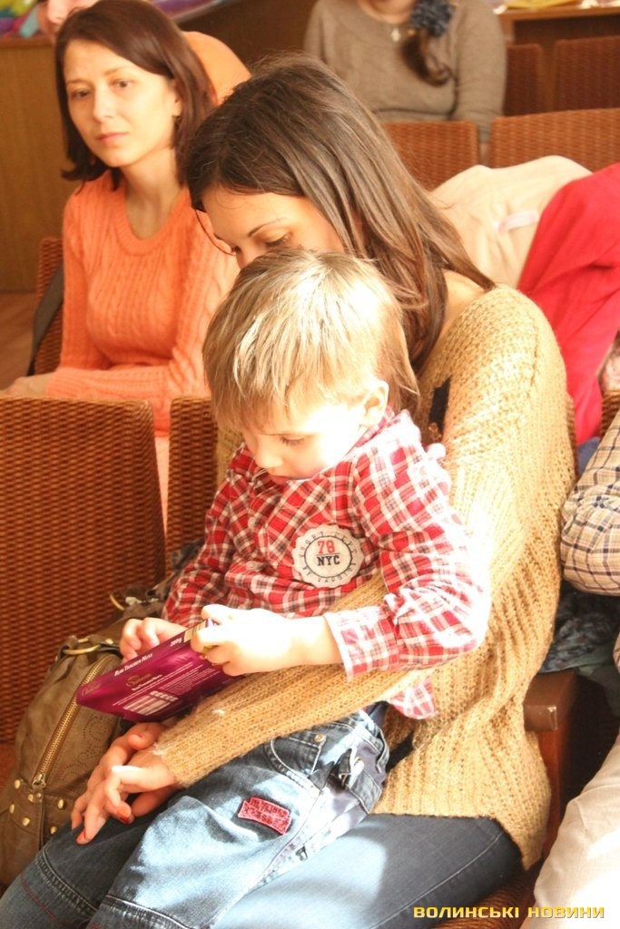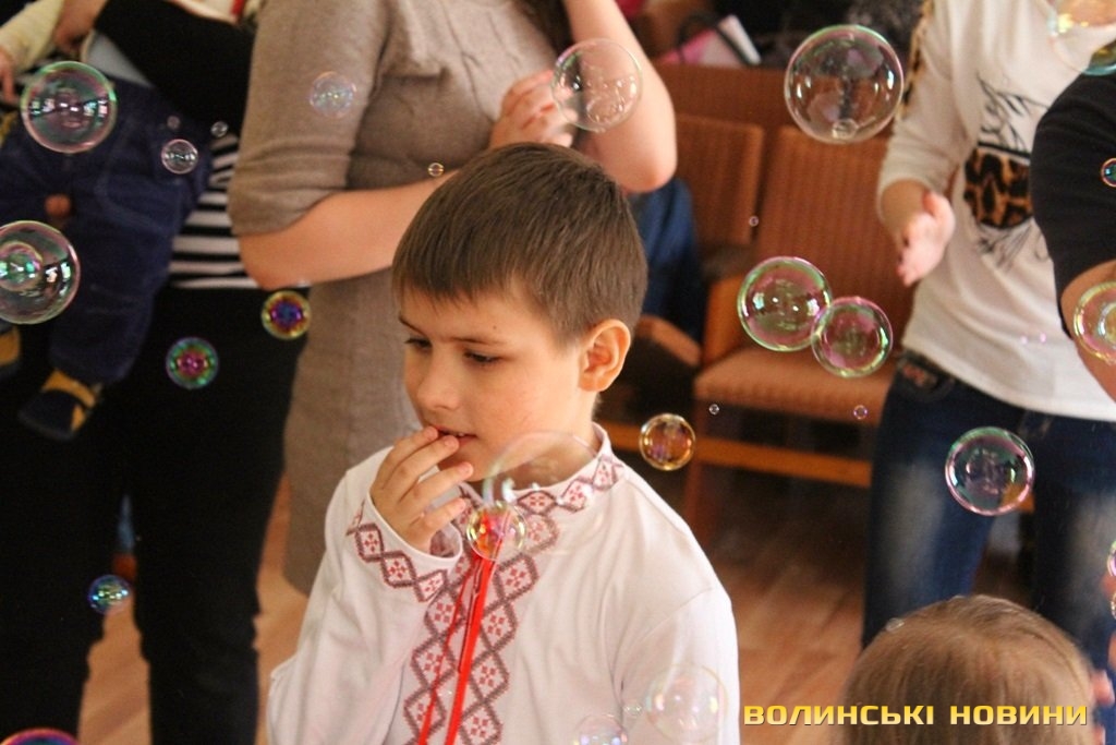 Священики подарували дітям примірник «Православного букваря» та шоколадки, а матерям роздали іконки Волинської Божої Матері: «На цій іконці зображена також мама. Це – ненька, яка була поряд із своїм Сином від початку і до кінця. Тільки мати знає, що таке молитися над колискою хворої дитини», - сказав Валентин Марчук. Разом з тим хлопці та дівчата із православного волонтерського молодіжного руху «Омофор» підготували для малят, які страждають аутизмом, цікаву та насичену програму. Так, діти зустрілися з велетенським Мікі Маусом, бавилися із мильними бульбашками та гралися в динамічні ігри.Також дорослі та малеча змогли взяти участь у майстер-класах із різноманітних видів декоративно-прикладного мистецтва, які для них провели волонтери.