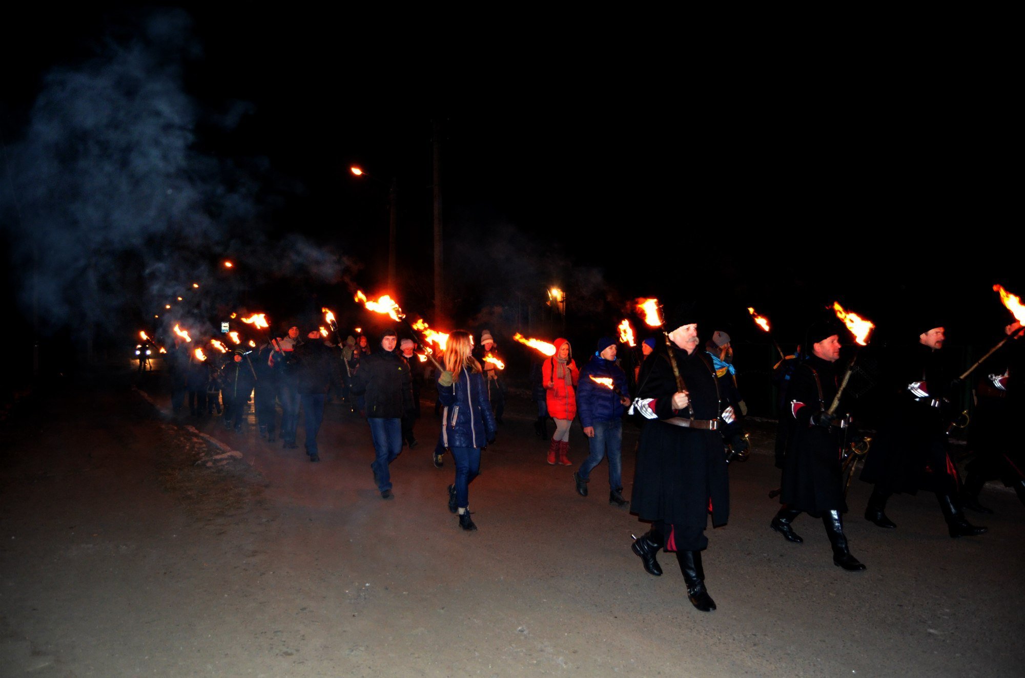 Зі слів організаторів, а це 3 молодих людей - Олександр Герасимик, Юлія Пащенко та Роман Мельник, вогонь для них символізує очищення та захист, який зупинив наступні розгони майдану. Патріоти пройшли вулицею Т.Шевченка до памятного знаку героям небесної сотні, де відбулося віче.