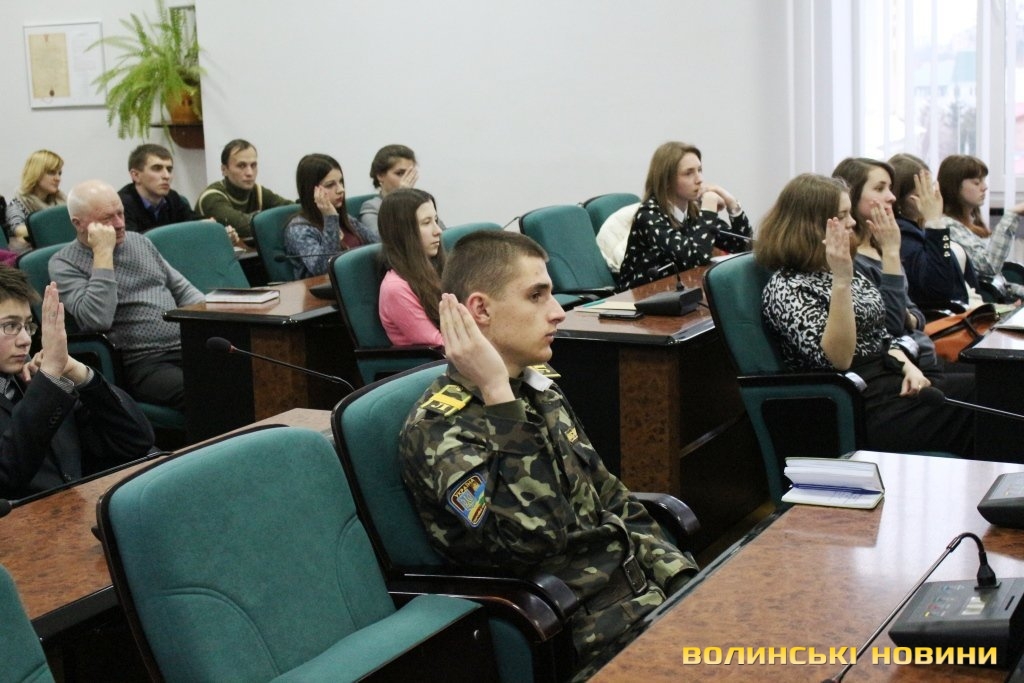 Представники ради закликали молодь Луцька та всі підприємства, установи та організації, зареєстровані у місті, усіма можливими засобами підтримувати дій, спрямованих на зупинення агресії проти України, та встановлення миру.