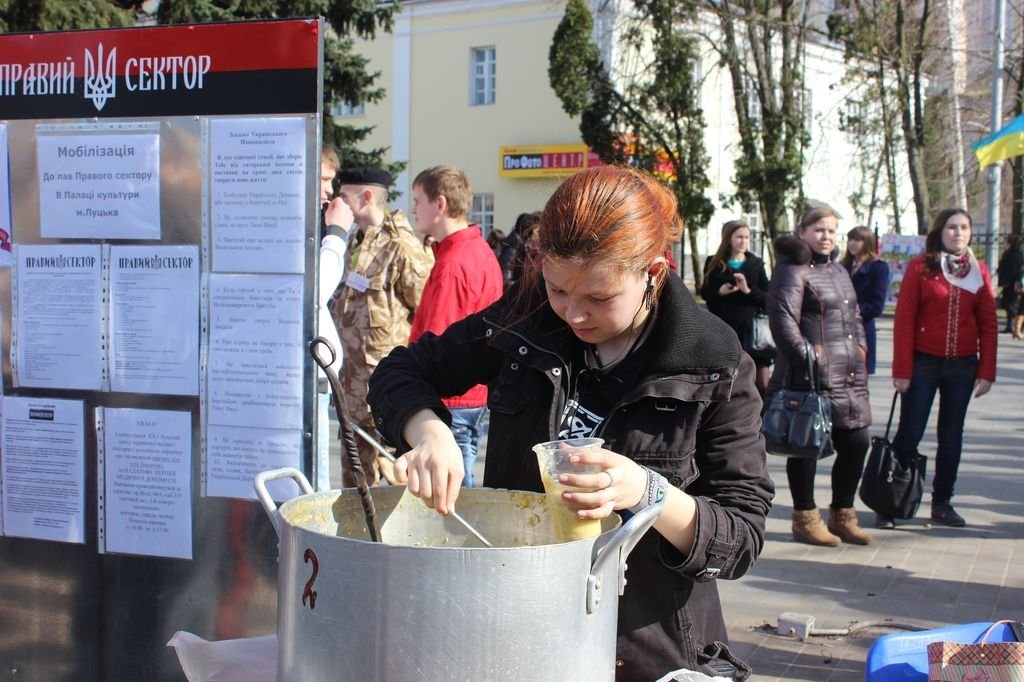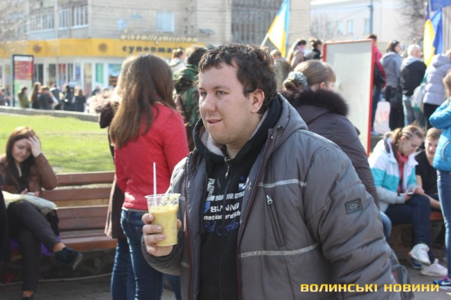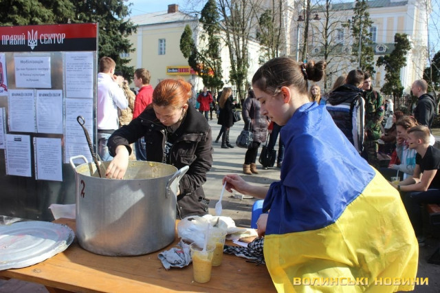 У знак солідарності зі студентами вищих навчальних закладів Криму луцькі спудеї приготували куліш, яким могли поласувати всі охочі під час студентського віча.