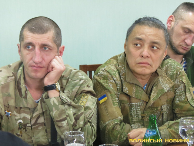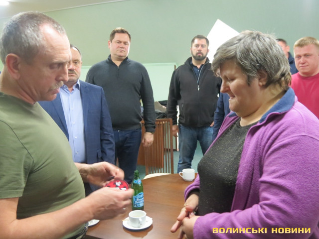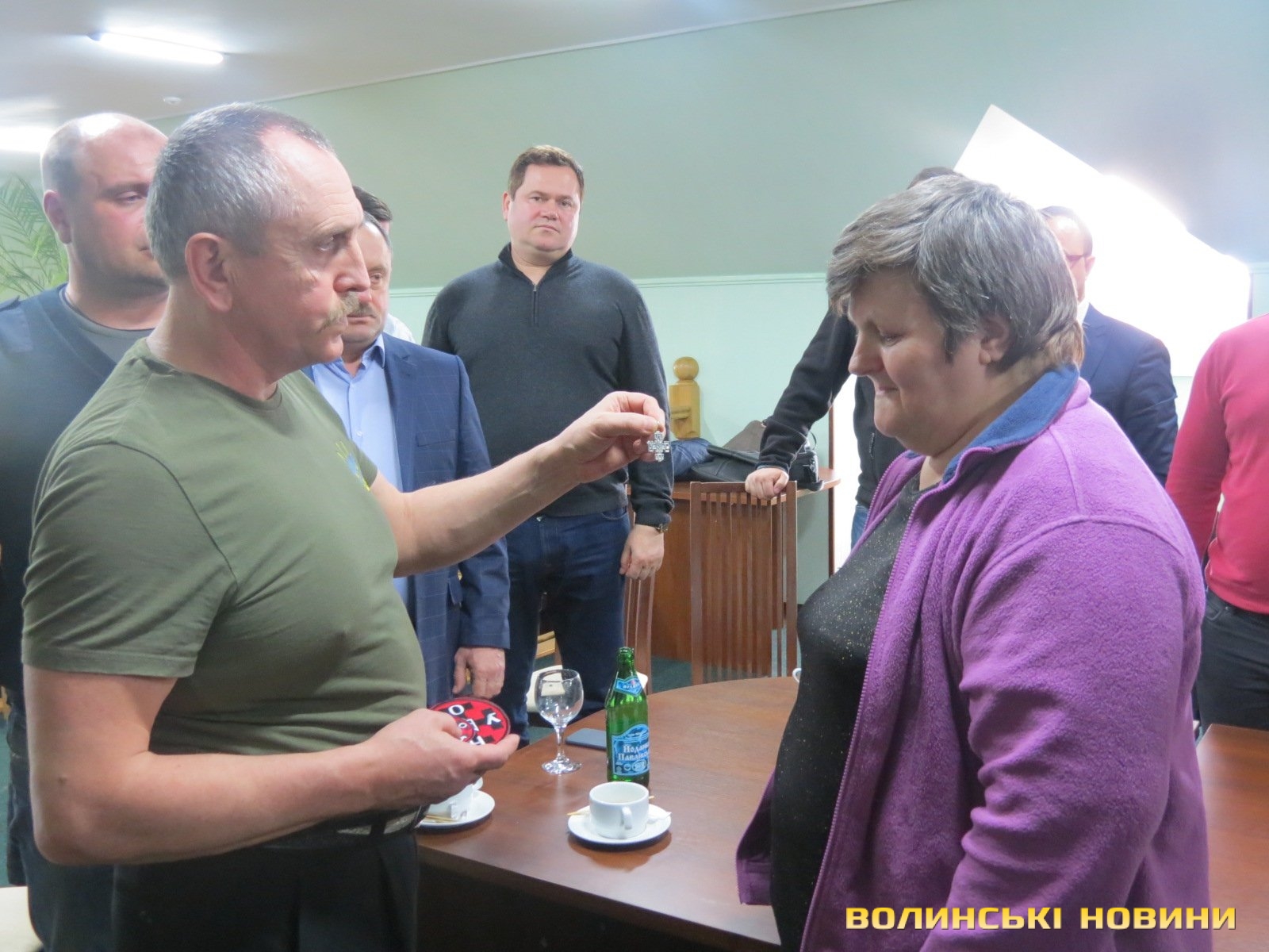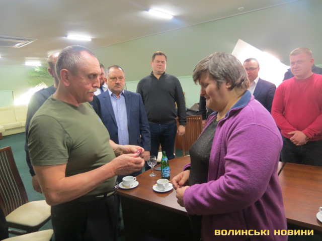 Присутні на засіданні круглого столу схвально підтримали пропозицію створення на Волині Української військової організації. І наостанок Сергій Сивий вручив значок та шеврони УНА-УНСО Катерині Хом’як, матері братів-айдарівців, які досі вважаються зниклими безвісти.