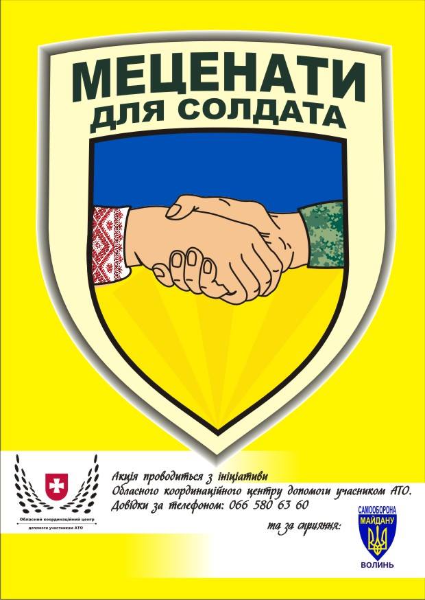 Ось чому Волинський обласний координаційний центр допомоги бійцям АТО у партнерстві із Самообороною Майдану Волині започатковує благодійну акцію «Меценати для солдата».