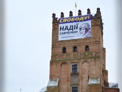 З ініціативи громадської організації «Батьківщина Молода» на Замку Любарта вивісили банер на підтримку народного депутата Надії Савченко, яку незаконно утримують в російському СІЗО, - повідомили організатори акції.
