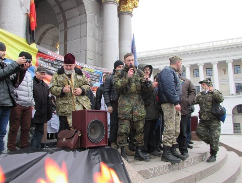 багато військових як з добровольчих батальйонів, так і зі Збройних сил України, але їхня акція є мирною. "Ми зробимо все, щоб зміни в Україні пройшли без крові. Але якщо злочинці при владі спробують здійснити силовий розгін або якісь провокації, то ті бойові об'єднання, які входять в нашу координаційну платформу РПС, стануть на захист українського народу, і ніхто не вагатиметься", - наголосив Бондаренко.