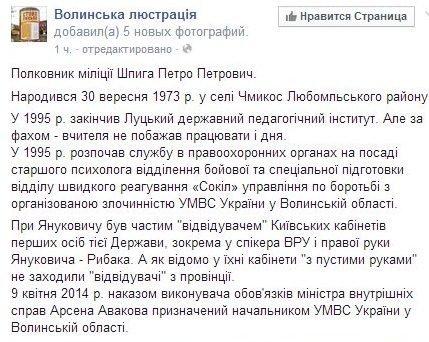 На цій сторінці сьогодні, 16 квітня, з’явилось і «досьє» на нинішнього очільника волинської міліції Перта Шпигу.