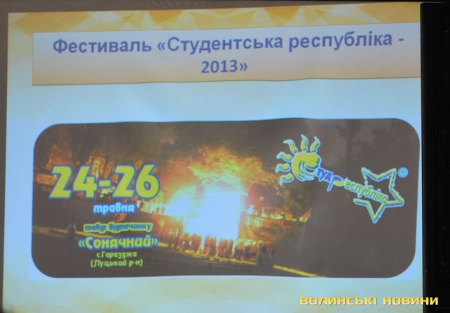 Як розповіла голова «Студентської ради Волині» Анастасія Шевчик, 2013 рік був продуктивним для організації.З листопада 2012 року по грудень 2013 вдалось реалізувати 15 заходів та проектів. Зокрема, відбувся фестиваль «Студентська республіка-2013», в рамках якого тривав дебатний турнір, спортивні змагання, інтелектуальні ігри.Також обрали Першу леді Волині та Студентського мера.