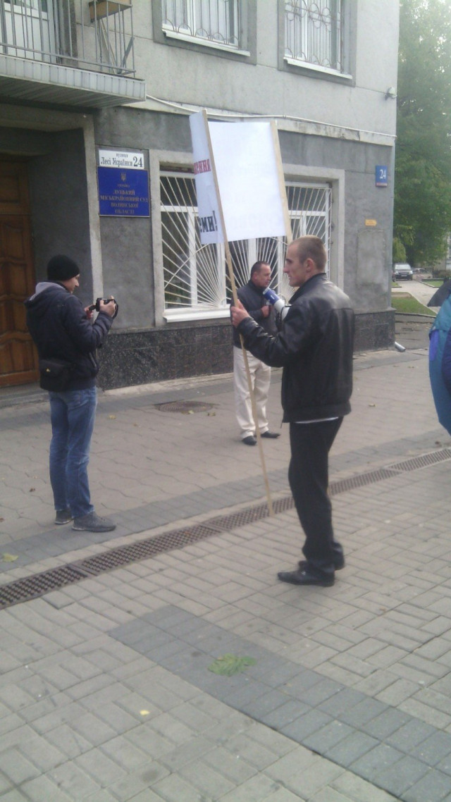 На крадієві і шапка горить! чи то здуру чи божої волі.....!?? Біля міськрайоного суду на акцію не сподівано очікував одіозний суддя ющук, покурюючи папіроску, який був обпльований активістами за чисте довкілля. Один з тих хто причетний до п'яти ста законних сміттєзвалищ серед орних земель, "серед хліба!" Причетний до захоронення сміття в з аповідній зоні озера "світязь". Суддя ющук системно знищує здорове майбутнє своїх та наших дітей.