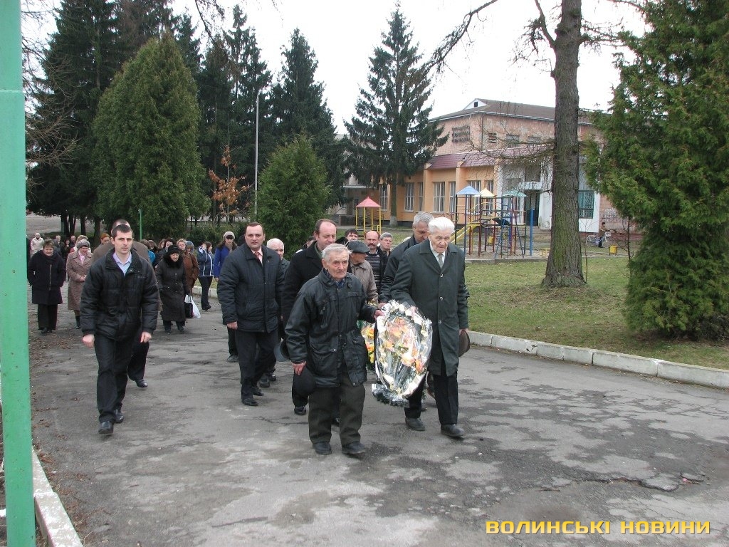 Покласти квіти до Обеліска Слави прийшли також ветерани зі Спілки Афганців та небайдужі рожищани. Голова районної організації ветеранів війни та праці Марія Козачук запропонувала вшанувати хвилиною мовчання пам'ять полеглих фронтовиків та героїв з Небесної сотні.