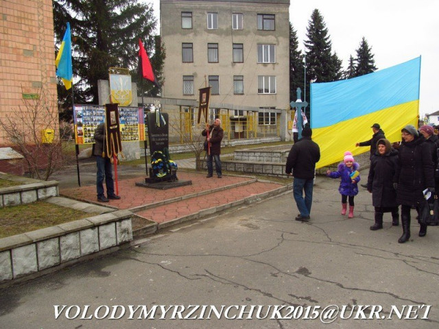 Біля пам’ятника борцям за волю України в Старій Вижівці встановили банер на честь Героїв Небесної сотні.