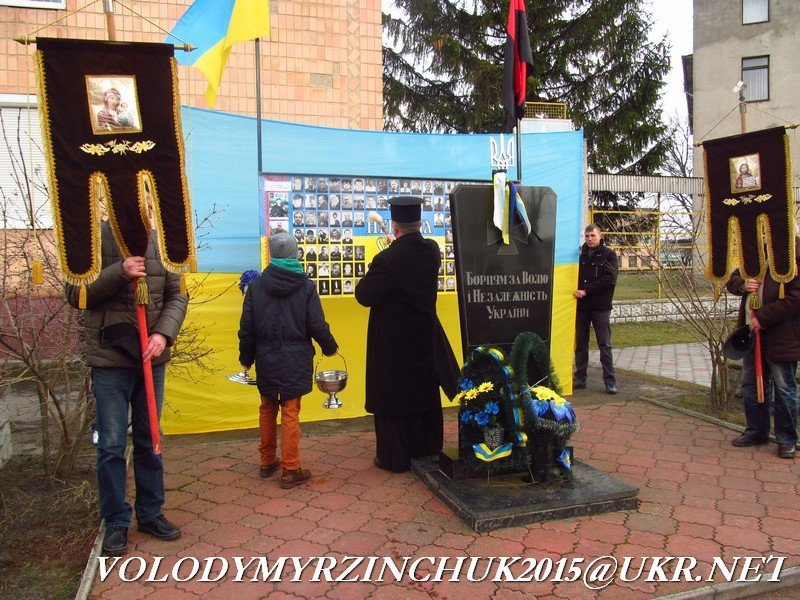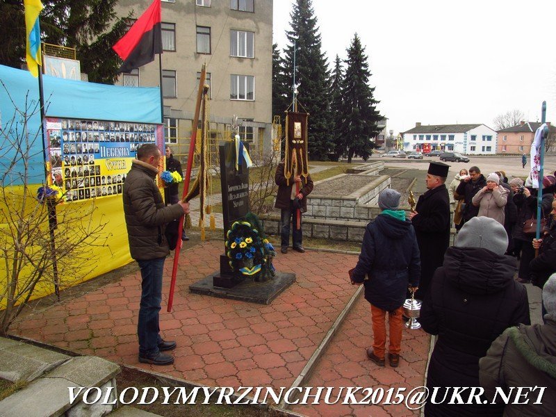 Відбулось освячення та панахида. У своїх промовах священик та інші виступаючі закликали громадян берегти завоювання Майдану, любити Україну пам'ятати, за що віддали своє життя Герої Небесної Сотні.