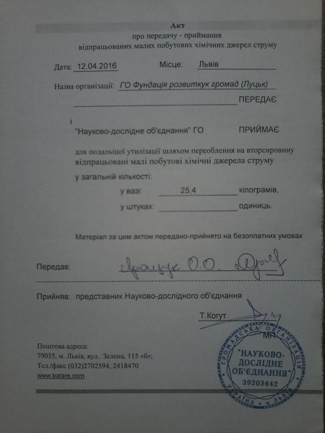 Так, активісти вже домовилася про співпрацю із львівською ГО «Науково-дослідне об’єднання». Тож відтепер будуть передавати їм зібрані використані батарейки з метою подальшої утилізації.