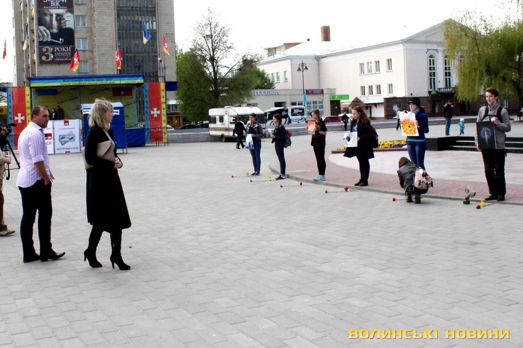 Флеш-моб розпочався на театральному майдані, де учасники близько години тримали в руках картини луцьких художників, вихованців мистецьких шкіл та вишів. Згодом, мовчки, молодь рушила до пам’ятника жертвам аварії на ЧАЕС на Меморіалі «Вічна Слава».