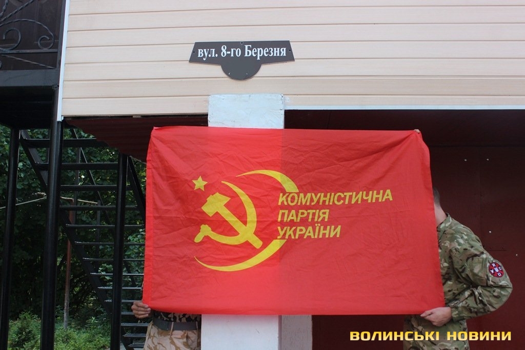 Активісти кажуть, що вони поводилися чемно, постукали в двері і зайшли до приміщення після запрошення. Переконують, що нічого не ламали і не нищили. Хлопці кажуть, в приміщенні, яке використовувалося, на їх думку, як підпільний офіс комуністів, знайшли партійні списки, тисячу примірників газети «Радянська Волинь», символіку Компартії. Окрім того, стверджують, в будівлі виявили списки бійців добровольчих батальйонів та ксерокопії їх паспортів. На їх думку, це можна буде використати в майбутньому, аби звинуватити бійців у вбивствах мирного російськомовного населення, як черговий елемент ворожої пропаганди.