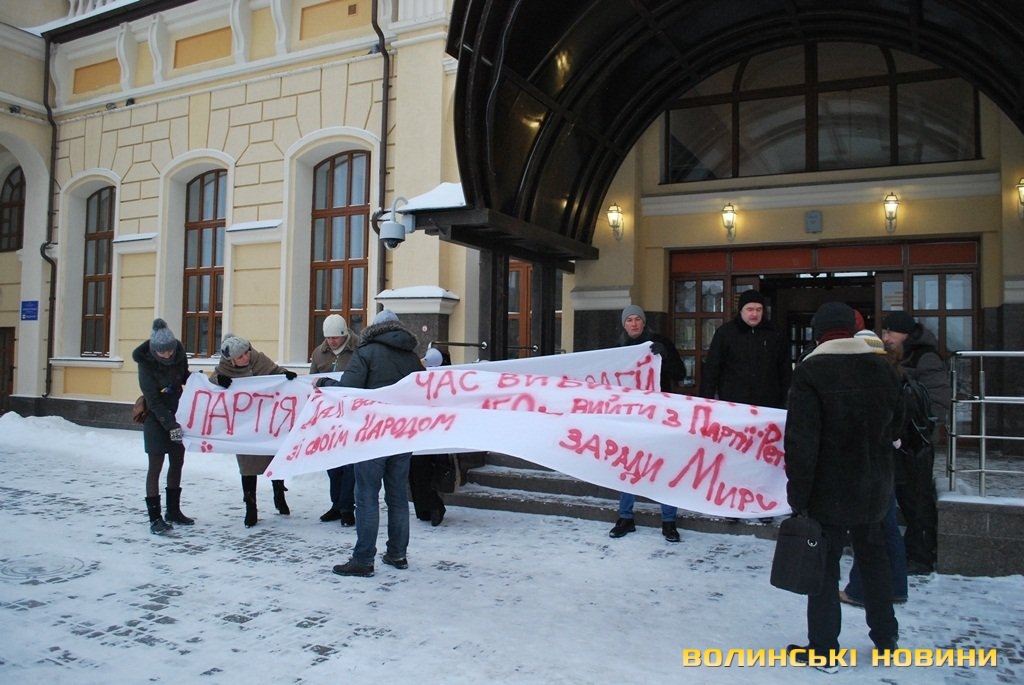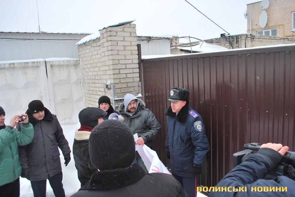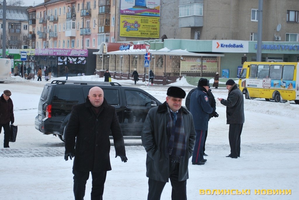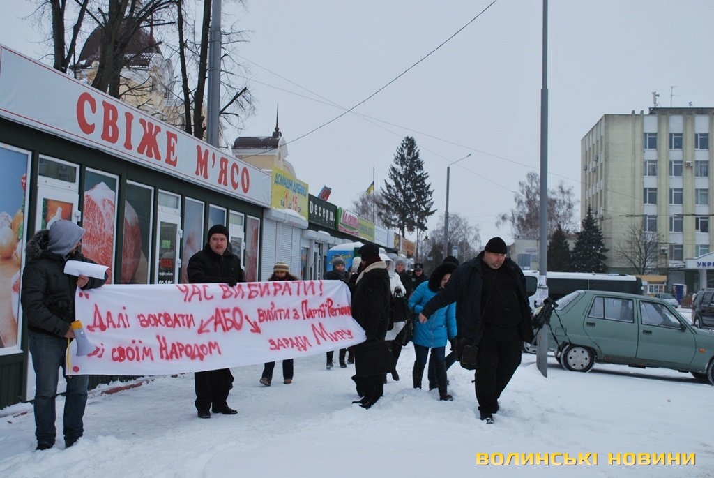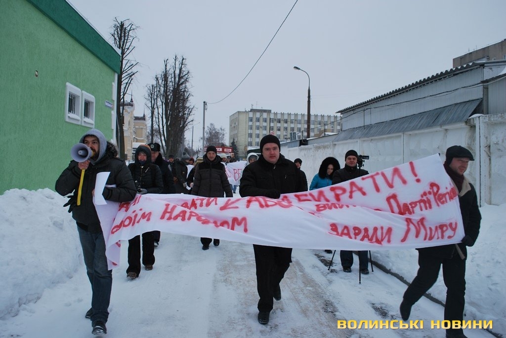 Незважаючи на те, що дійство не було багаточисельним, охороняти громадський порядок прибуло чимало співробітників міліції, разом з начальником УМВС у Волинській області Олександром Терещуком та його заступником полковником Олександром Никитюком.Акція протесту розпочалась на площі біля луцького залізничного вокзалу. Звідти активісти з листівками і транспарантами, рушили до місцевого осередку Партії регіонів.