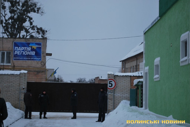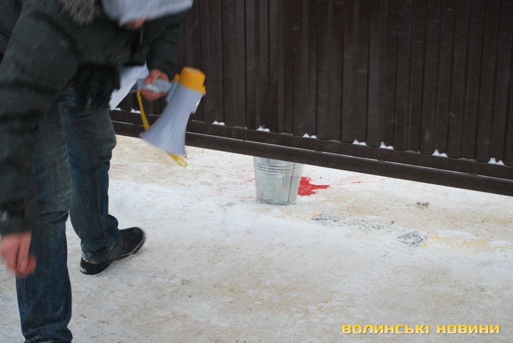 Там євромайданівці закликали членів, з їх слів, бандитської партії, покинути її лави та припинити кровопролиття. За високий паркан люди протиснули два відра, таким чином запропонували регіоналам самим вибрати, що вони хочуть пити: воду чи людську кров.