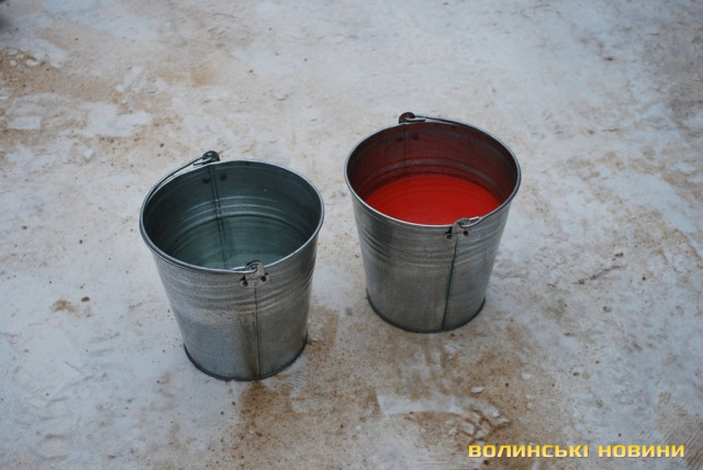 Одне відро з водою, а інше з бутафорською кров’ю активісти передали в обласний осередок Партії регіонів. Після чого встановили транспаранти з закликами припинити діяльність цієї політичної сили в Україні.
