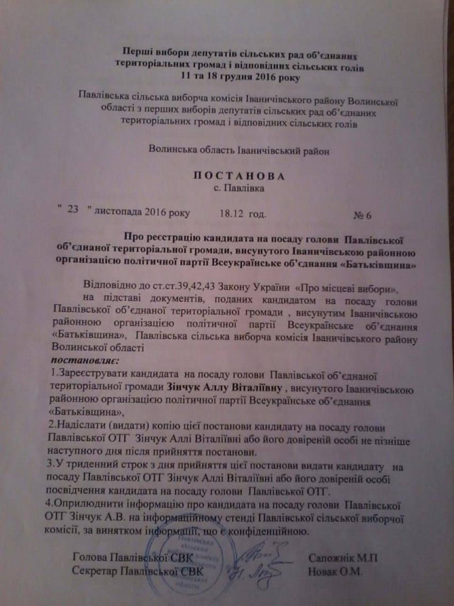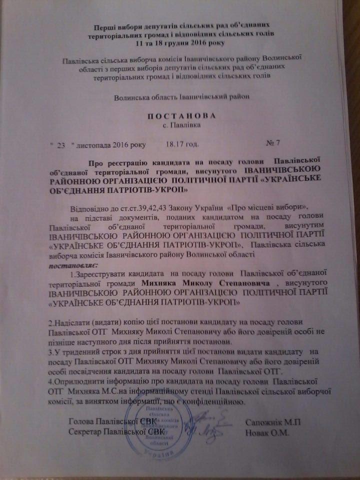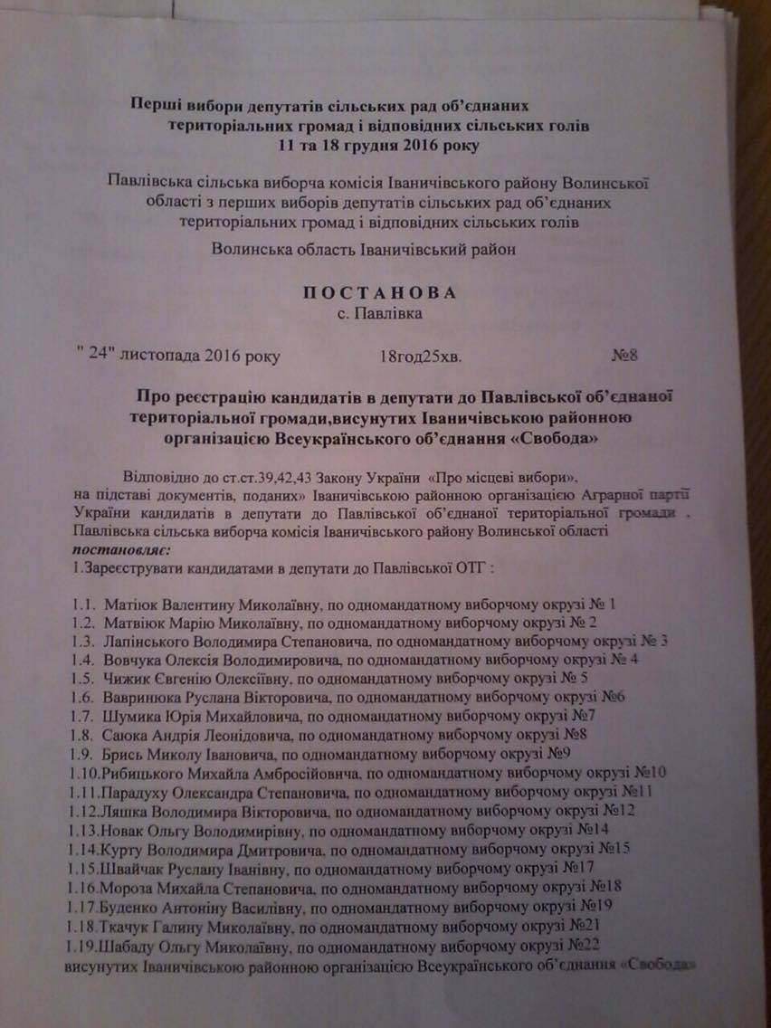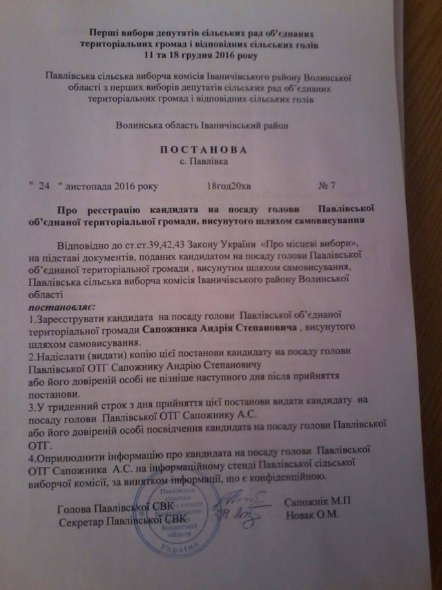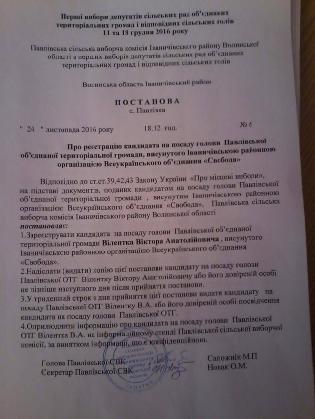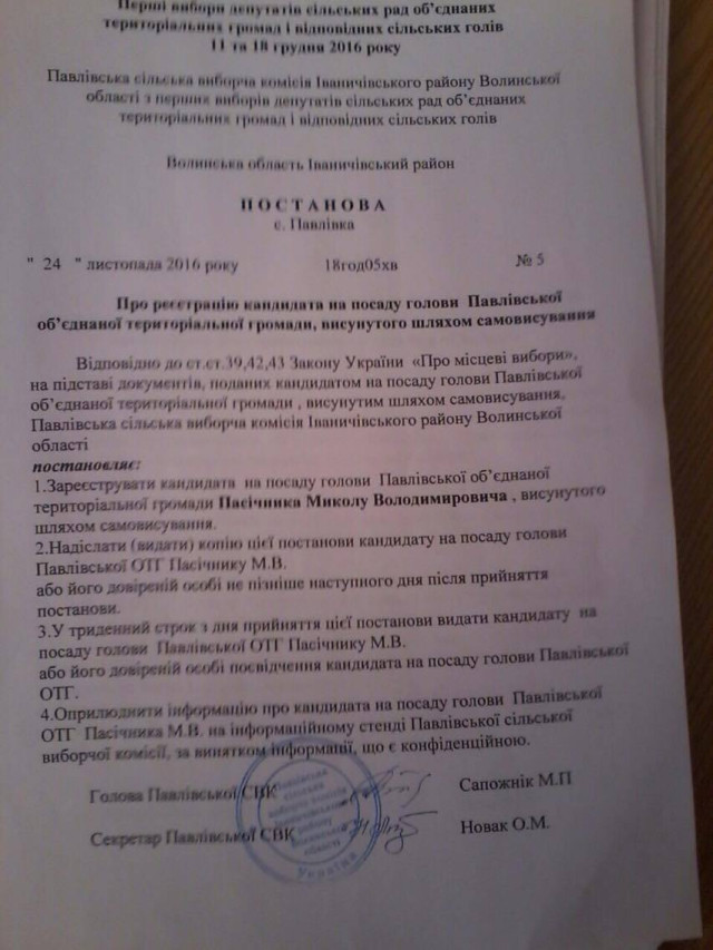 На посаду сільського голови Павлівської сільської ради об’єднаної територіальної громади зареєстровано 5 кандидатів. З них – 2 самовисуванці та 3 представники політичних партій.