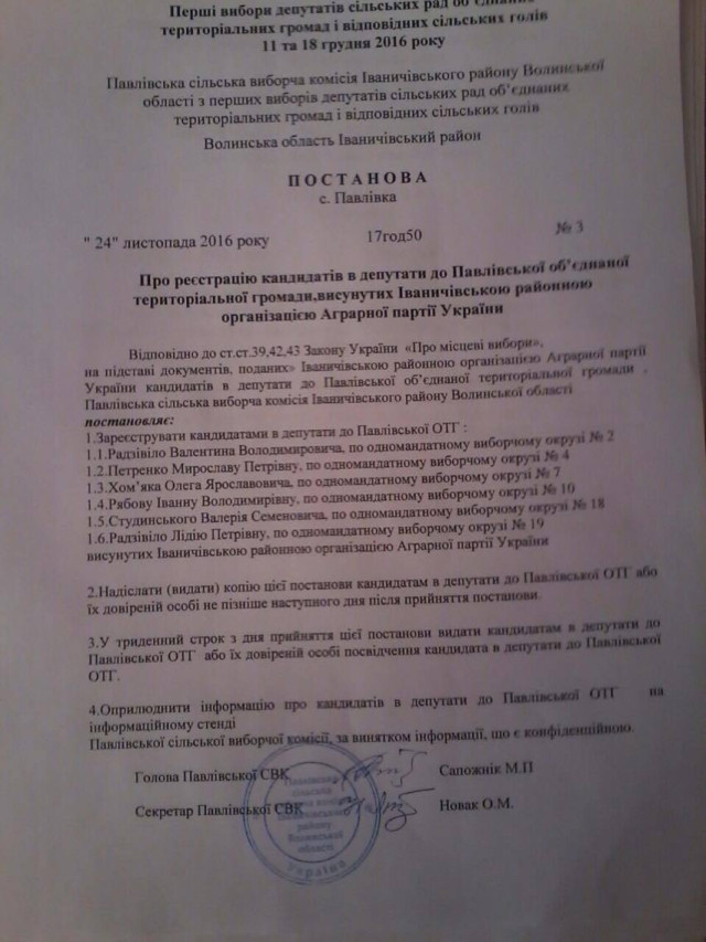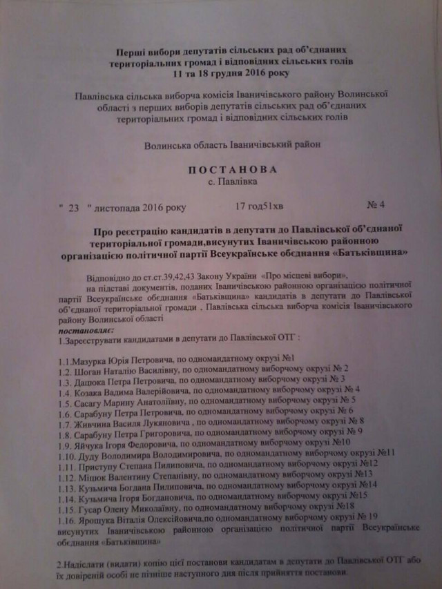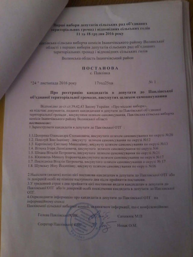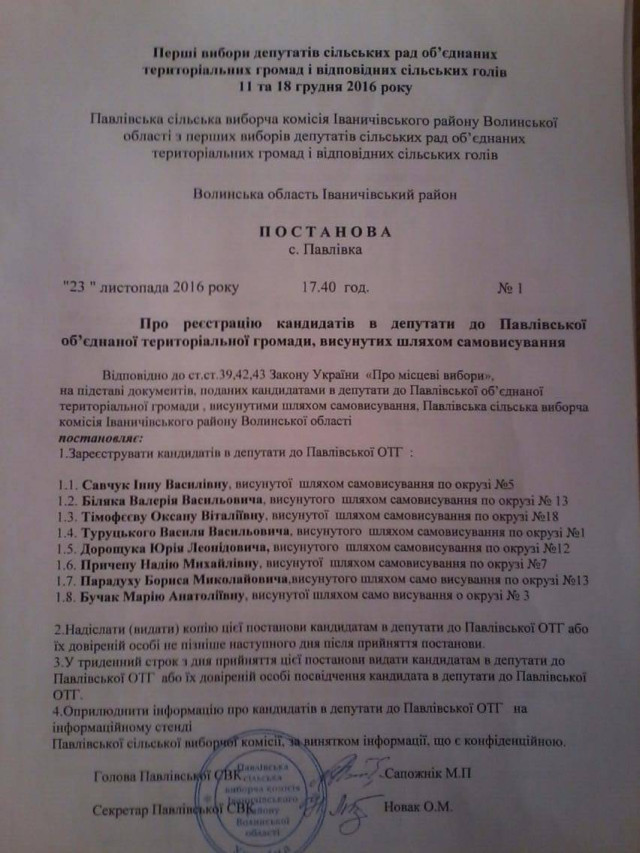 Відзначимо, що Павлівська сільська виборча комісія утворила виборчі округи відповідно до Постанови № 2 «Про утворення одномандатних виборчих округів» від 7 листопада 2016 р.