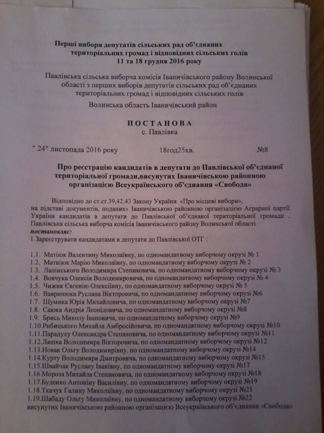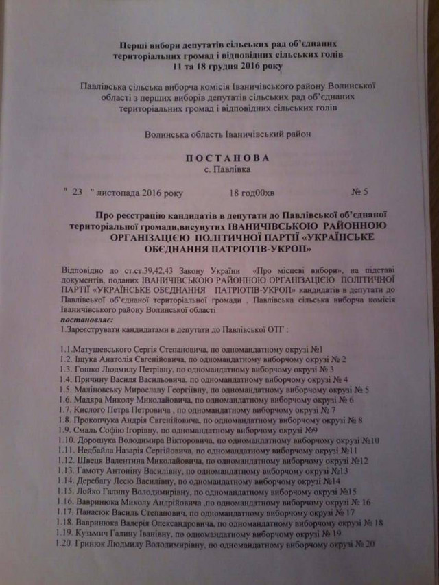 У Павлівській ОТГ – 119 кандидатів у депутати і 5 - на сільського голову