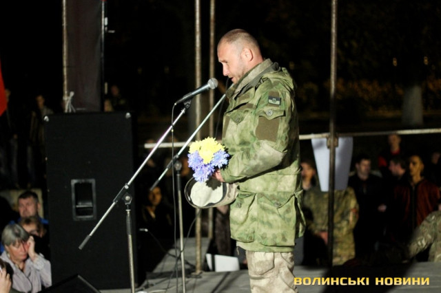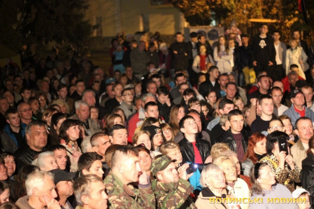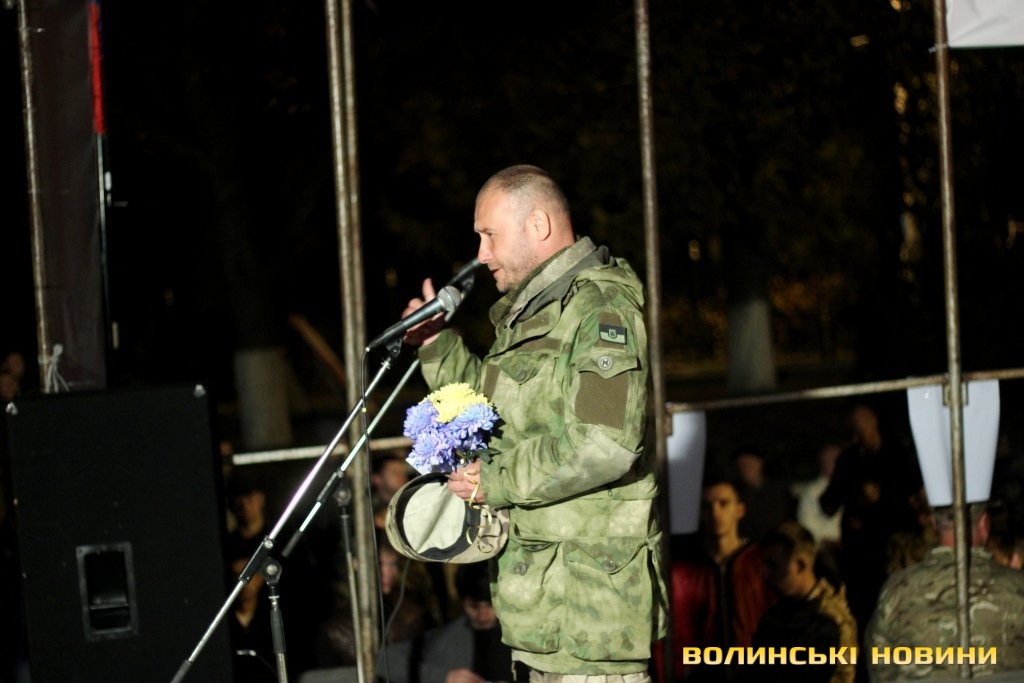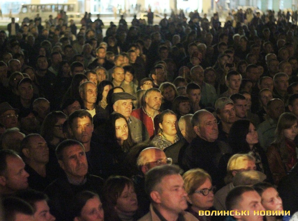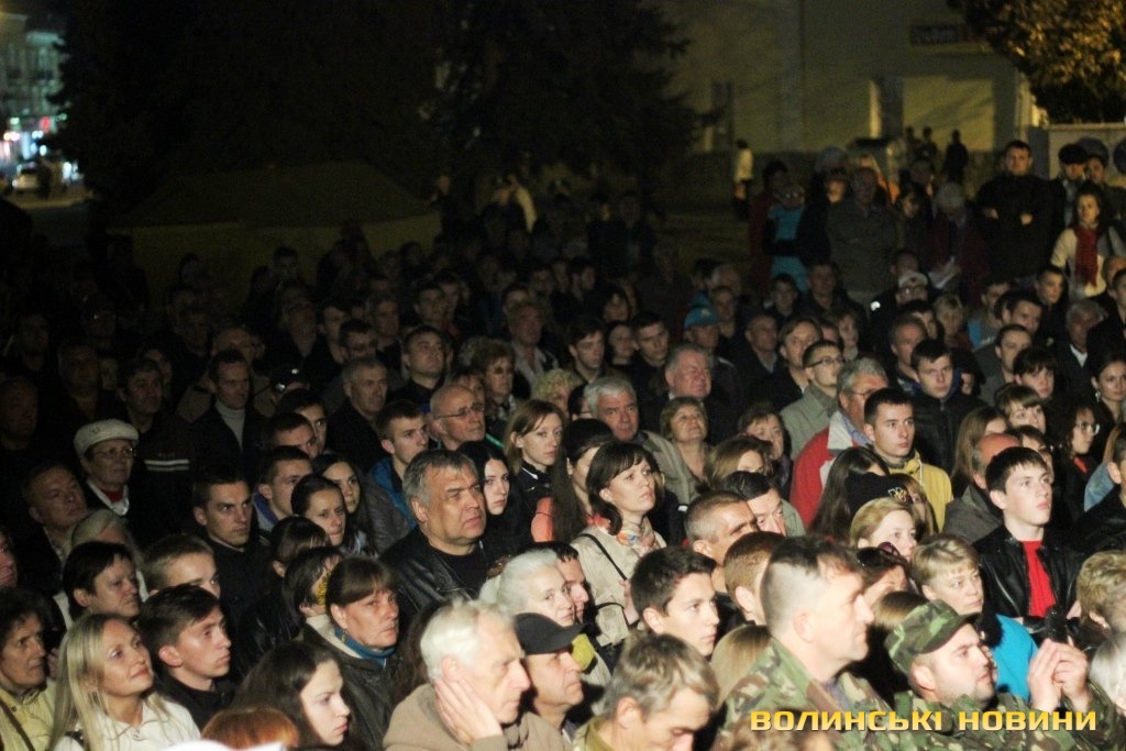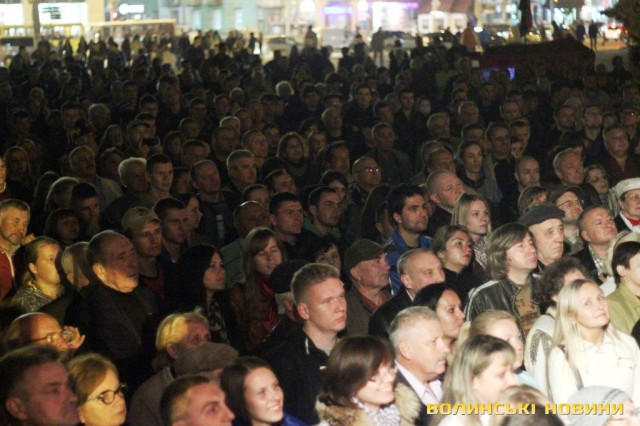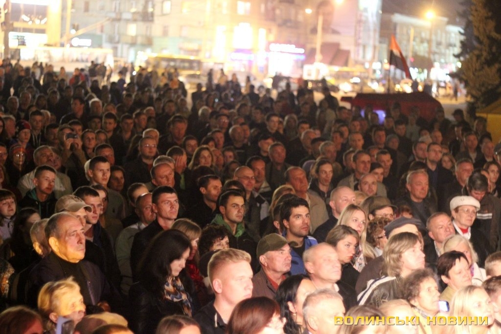 Зустріч із Дмитром Ярошем відбулася ввечері 16 жовтня на Театральному майдані у Луцьку.