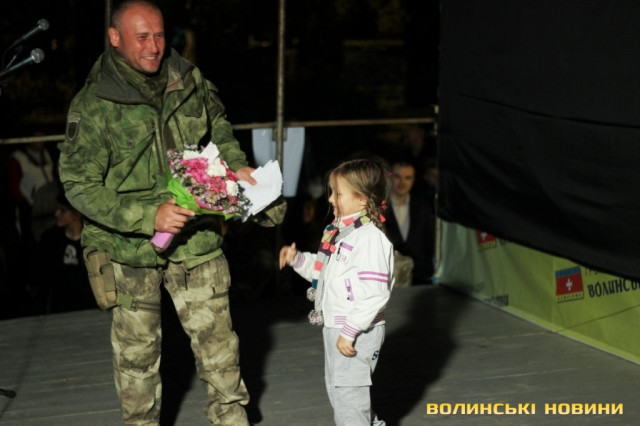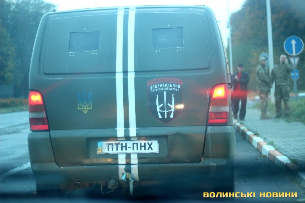 Незадовго до заходу провідника зустріли на трасі неподалік від Луцька активісти Правого сектора, бійці Добровольчого Українського Корпусу та автомайданівці. Колона автівок з синьо-жовтими та червоно-чорними прапорами проїхала у місто, де першою зупинкою став Луцький гарнізонний військовий госпіталь.