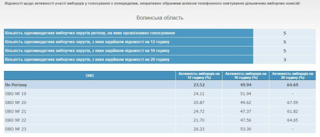 Явка виборців по округах Волині. Дані з сайту ЦВК: