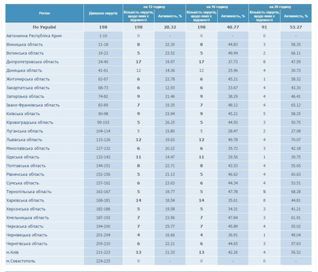 Для порівняння, за станом на 20:00 проголосували 52.96% виборців: