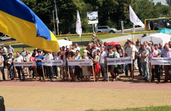 Закриття шкіл та скорочення ліжкомісць у медичних закладах районів Волині призведе до знищення села, - переконані учасники мітингу, які з прапорами, банерами та вилами зібралися на Київському майдані у Луцьку