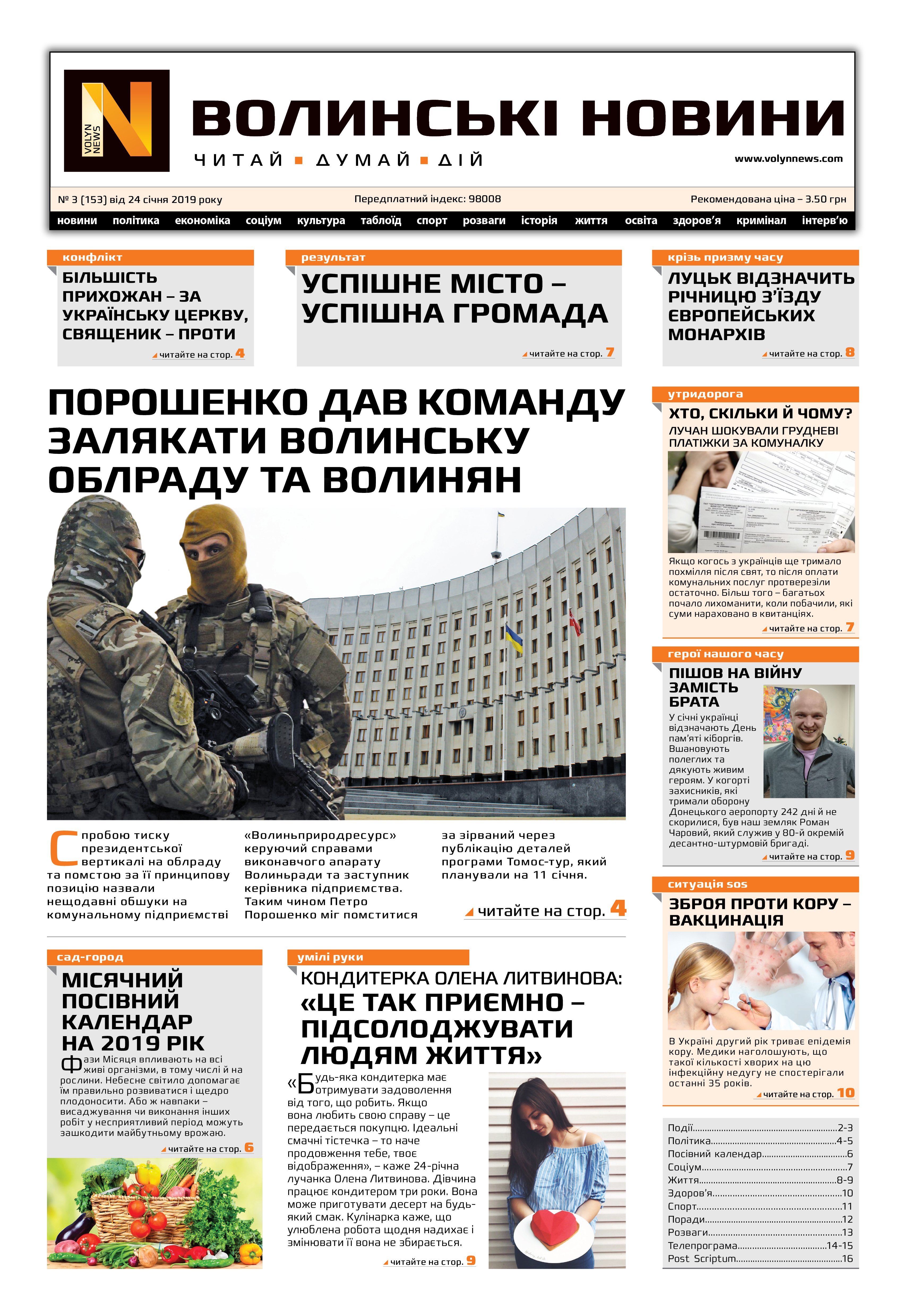 ВОЛИНСЬКІ НОВИНИ №03 (153) ВІД 24.01.2019