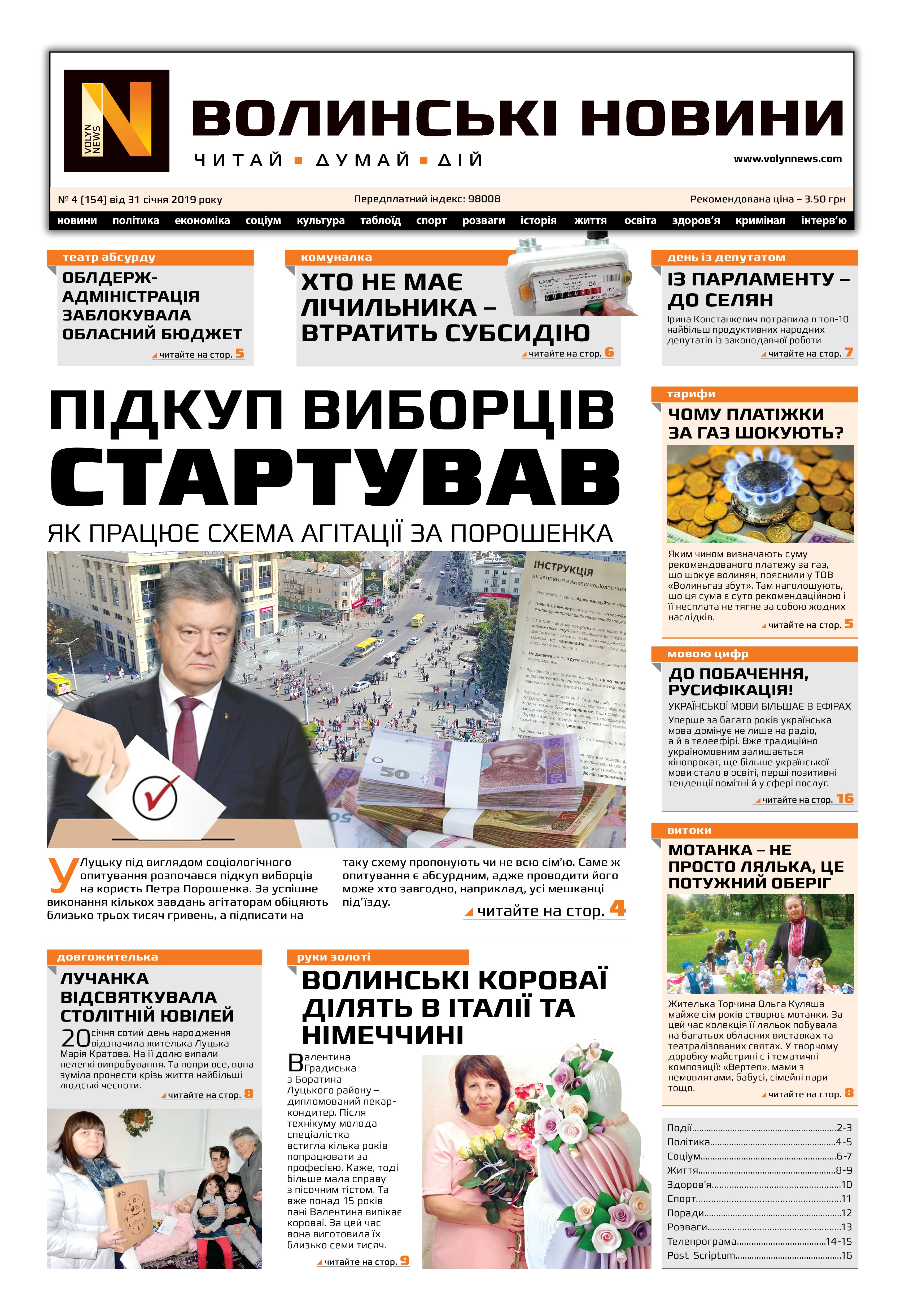 ВОЛИНСЬКІ НОВИНИ №04 (154) ВІД 31.01.2019