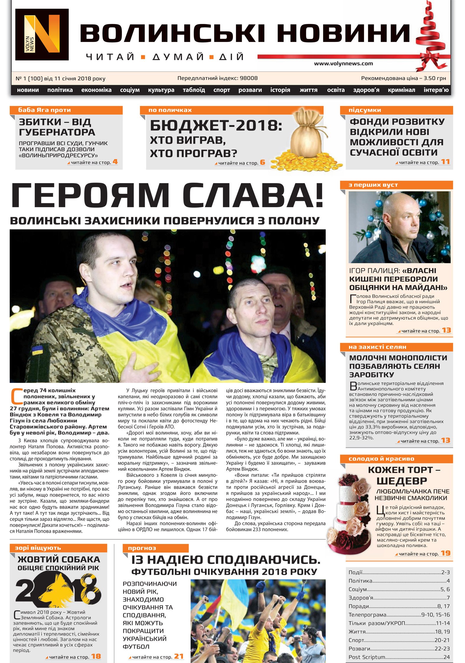 ВОЛИНСЬКІ НОВИНИ №1 (100) ВІД 11.01.2018
