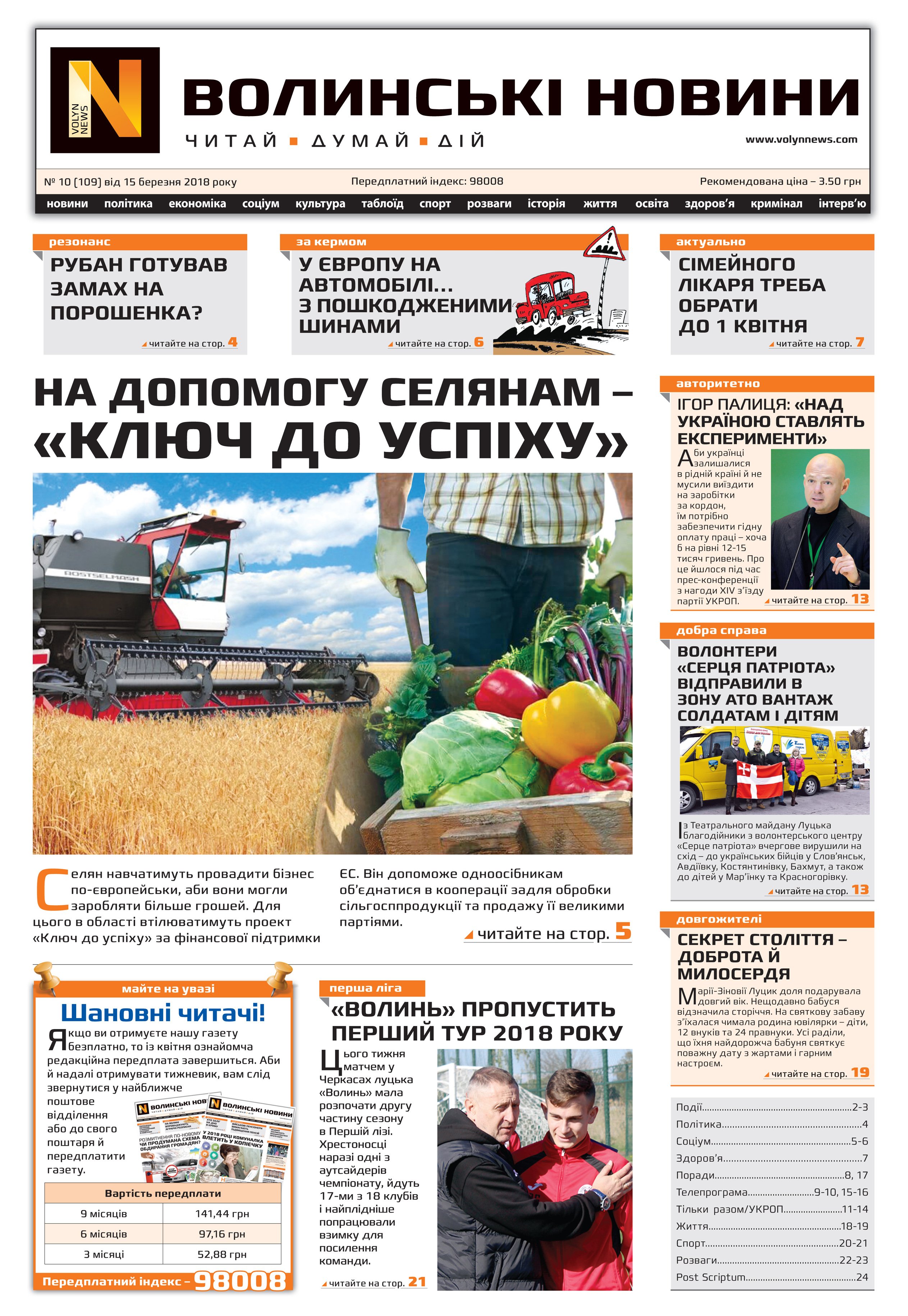 ВОЛИНСЬКІ НОВИНИ №10 (109) ВІД 15.03.2018
