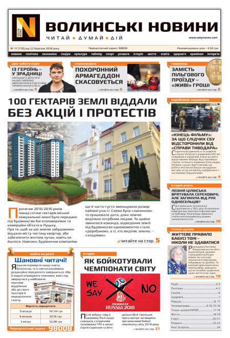 ВОЛИНСЬКІ НОВИНИ №11 (110) ВІД 22.03.2018