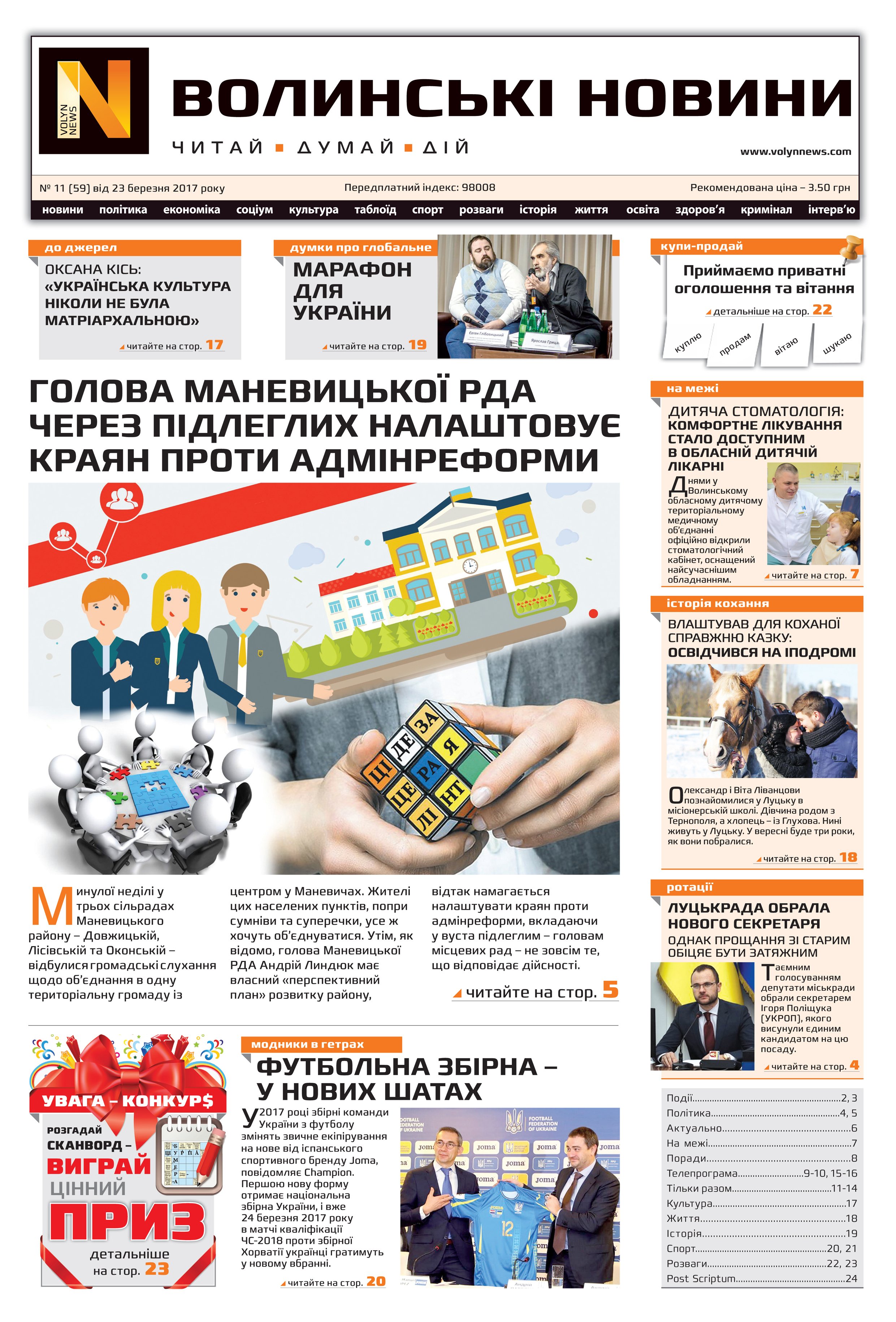 ВОЛИНСЬКІ НОВИНИ №11 (59) ВІД 23.03.2017