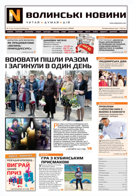 ВОЛИНСЬКІ НОВИНИ №11 ВІД 14.04.2016