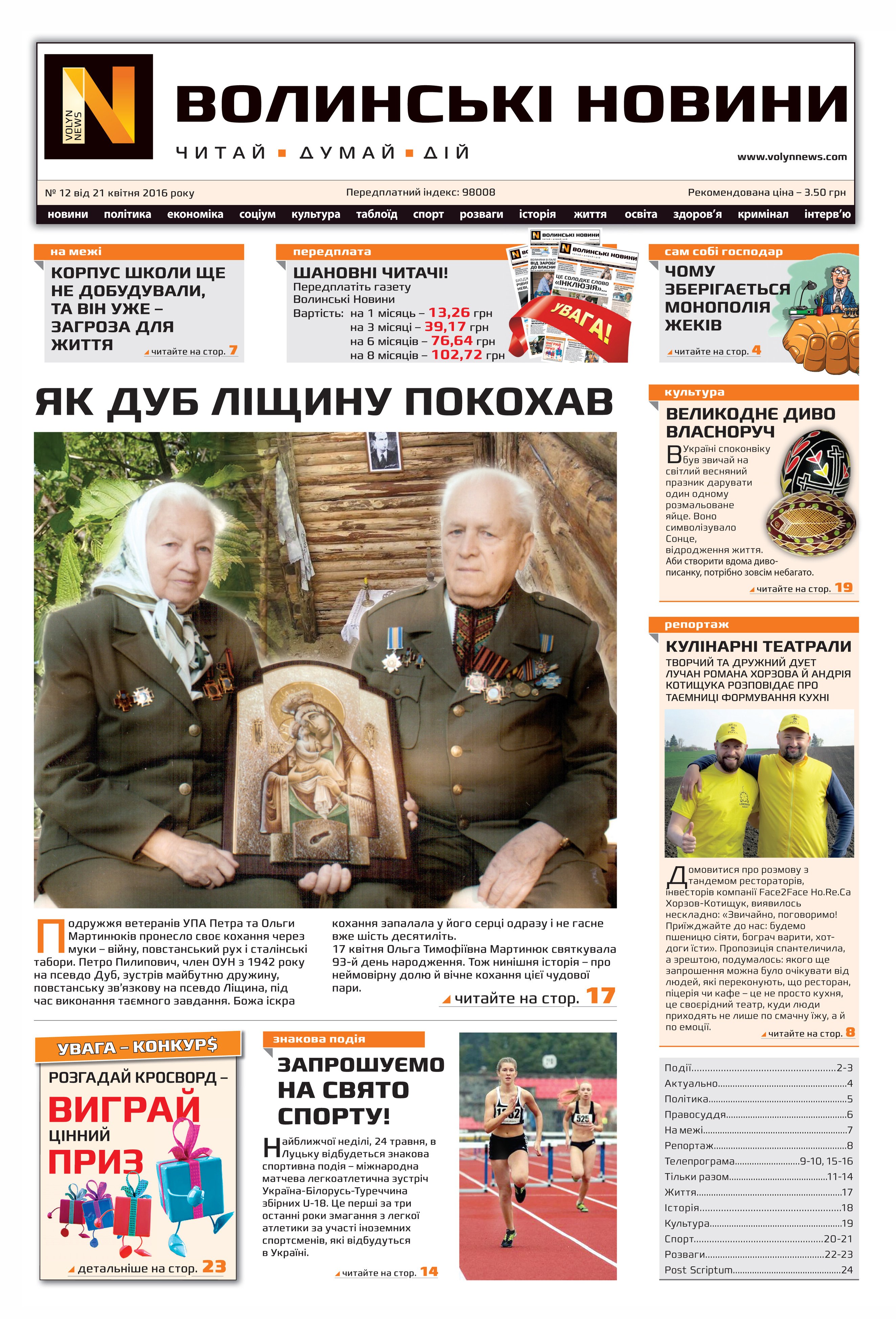 ВОЛИНСЬКІ НОВИНИ №12 ВІД 21.04.2016