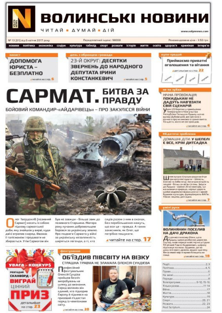 ВОЛИНСЬКІ НОВИНИ №13 (61) ВІД 06.04.2017