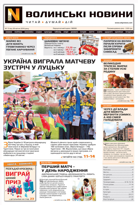 ВОЛИНСЬКІ НОВИНИ №13 ВІД 28.04.2016