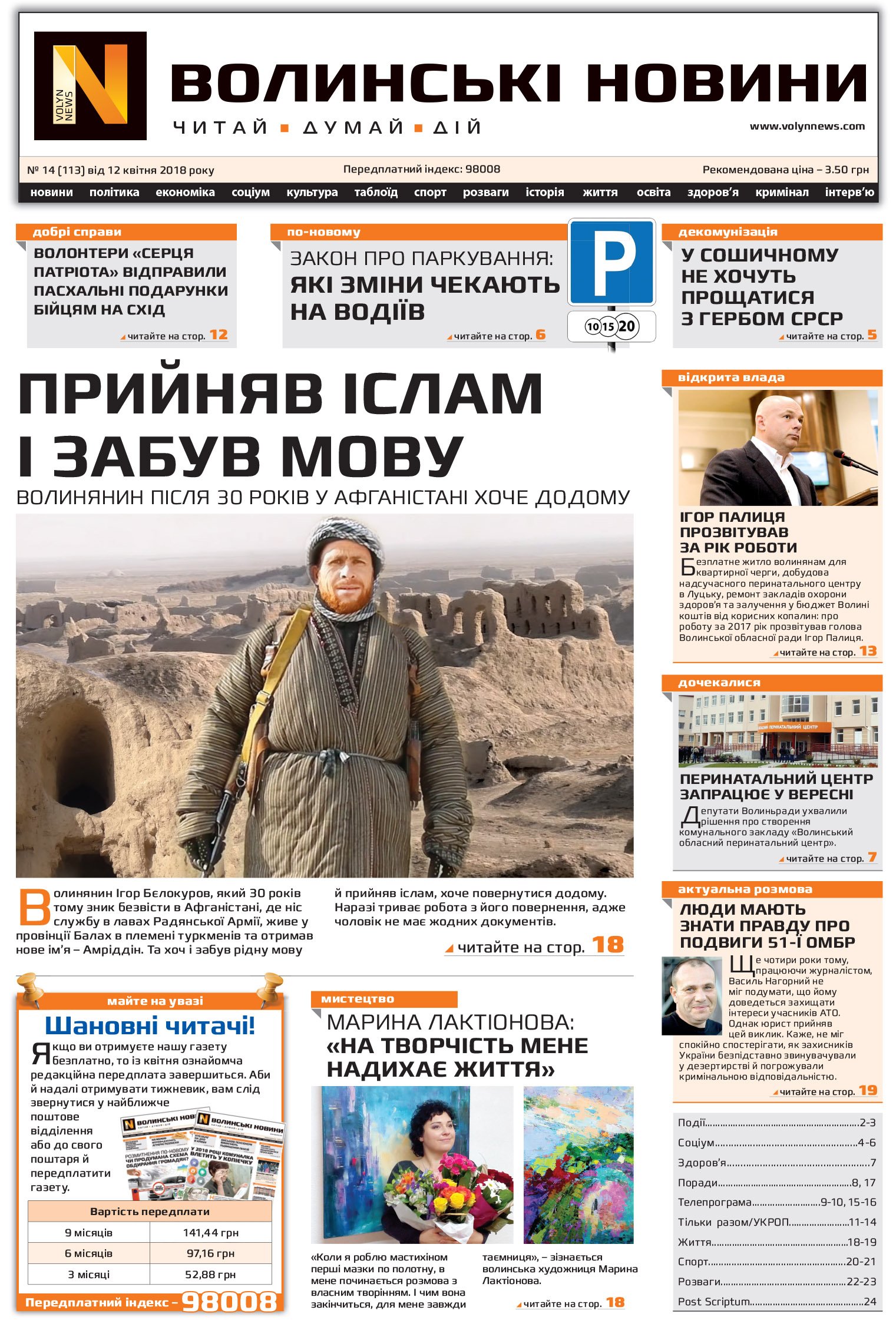 ВОЛИНСЬКІ НОВИНИ №14 (113) ВІД 12.04.2018