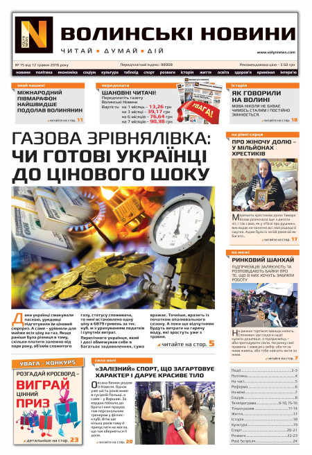 ВОЛИНСЬКІ НОВИНИ №15 ВІД 12.05.2016