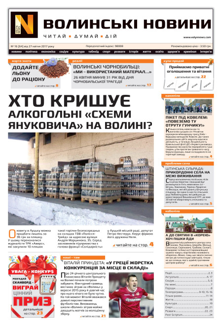 ВОЛИНСЬКІ НОВИНИ №16 (64) ВІД 27.04.2017