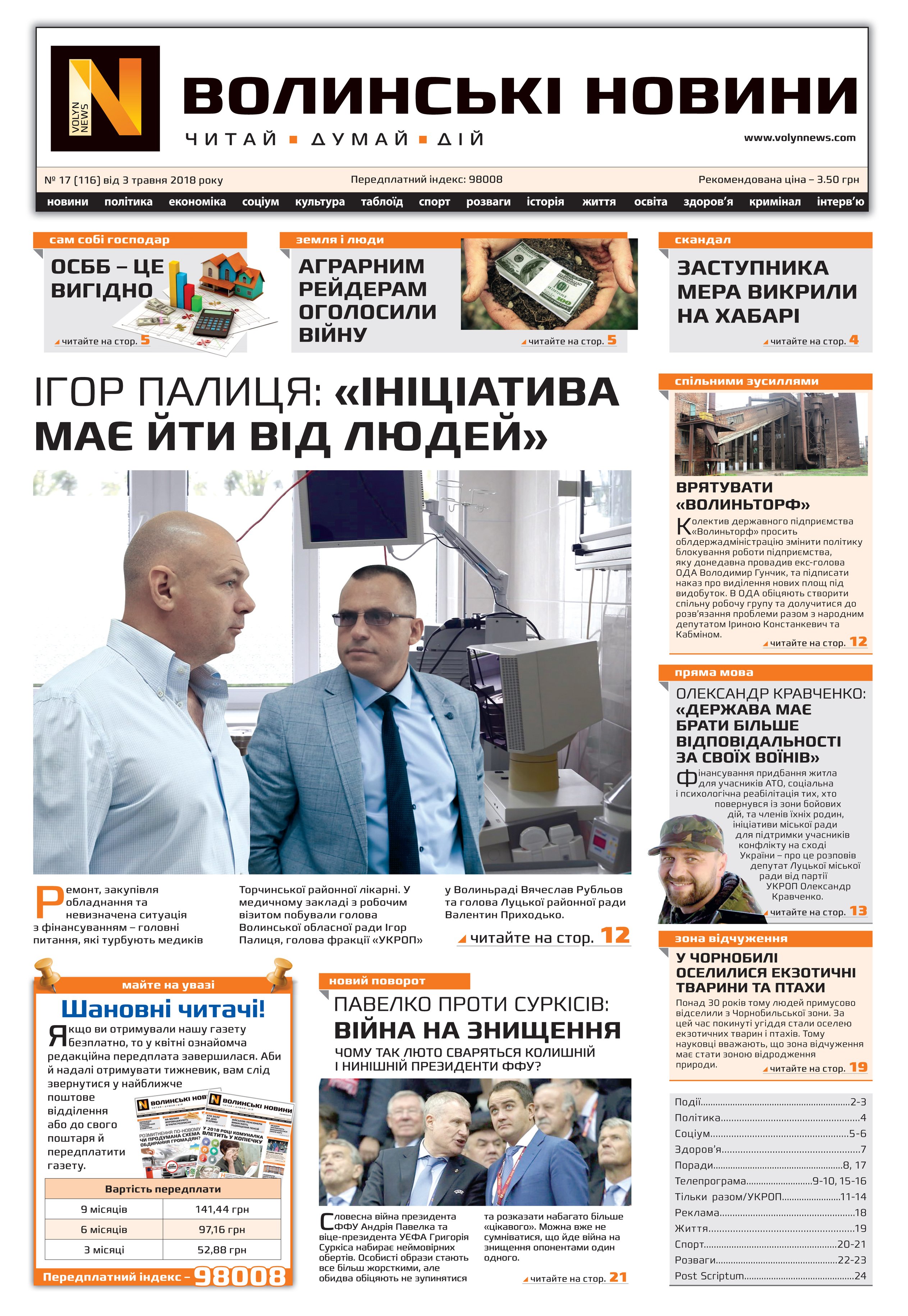 ВОЛИНСЬКІ НОВИНИ №17 (116) ВІД 03.05.2018