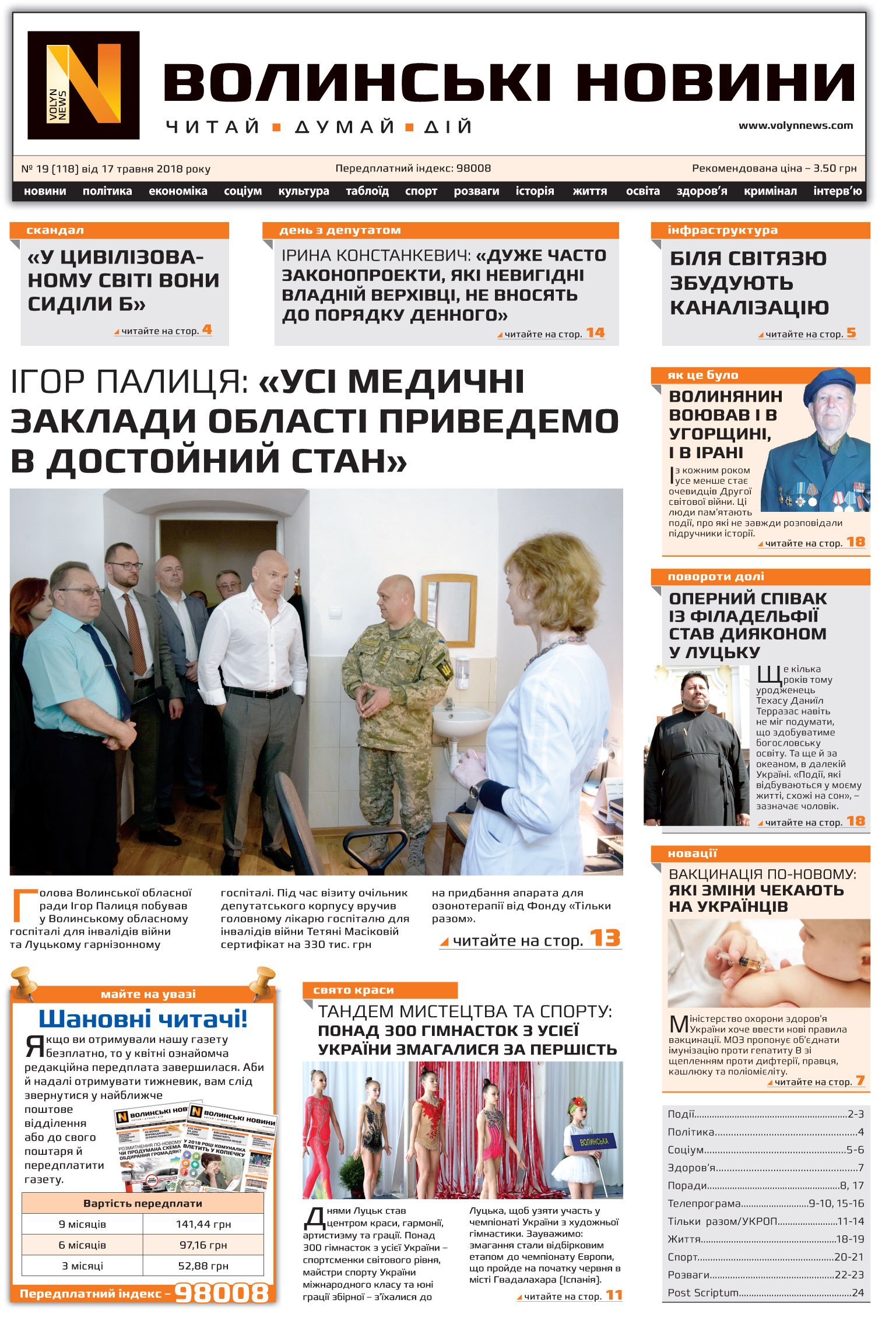 ВОЛИНСЬКІ НОВИНИ №19 (118) ВІД 17.05.2018