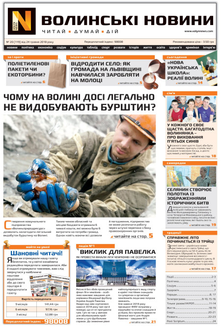 ВОЛИНСЬКІ НОВИНИ №20 (119) ВІД 24.05.2018