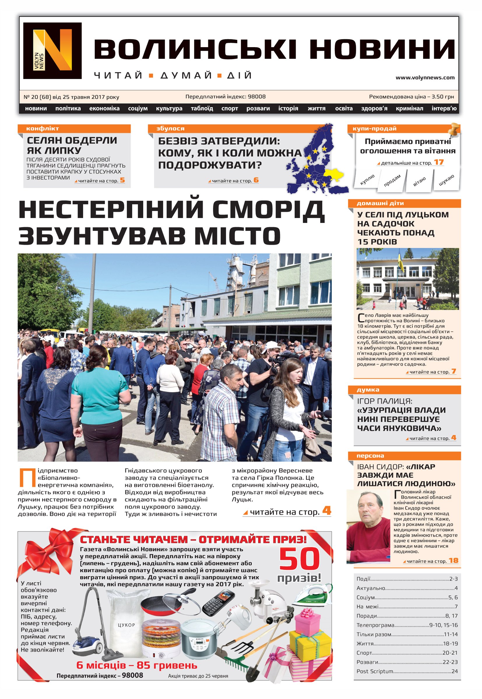 ВОЛИНСЬКІ НОВИНИ №20 (68) ВІД 25.05.2017